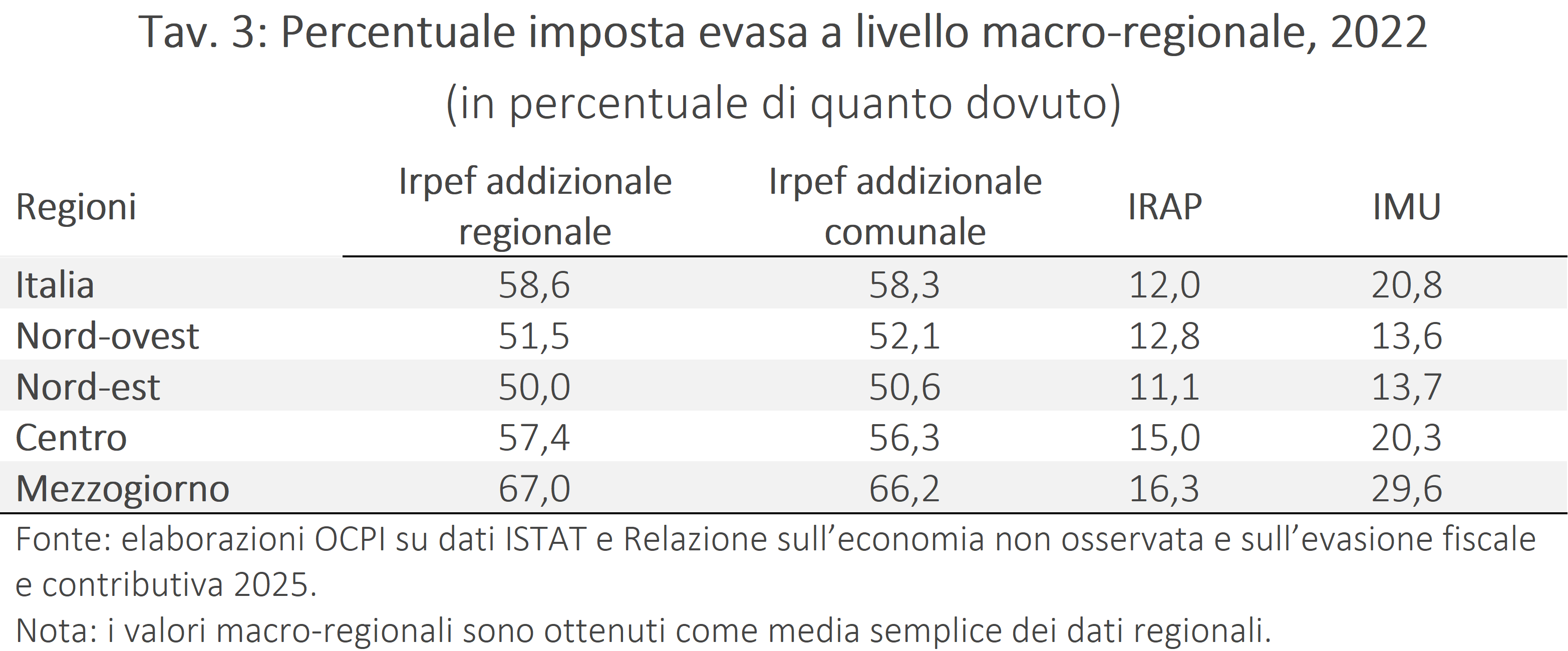 [4] I valori delle addizionali regionali e comunali IRPEF sono i valori mediani di intervalli contenuti nella Relazione 2025, mentre i dati IMU sono puntuali.