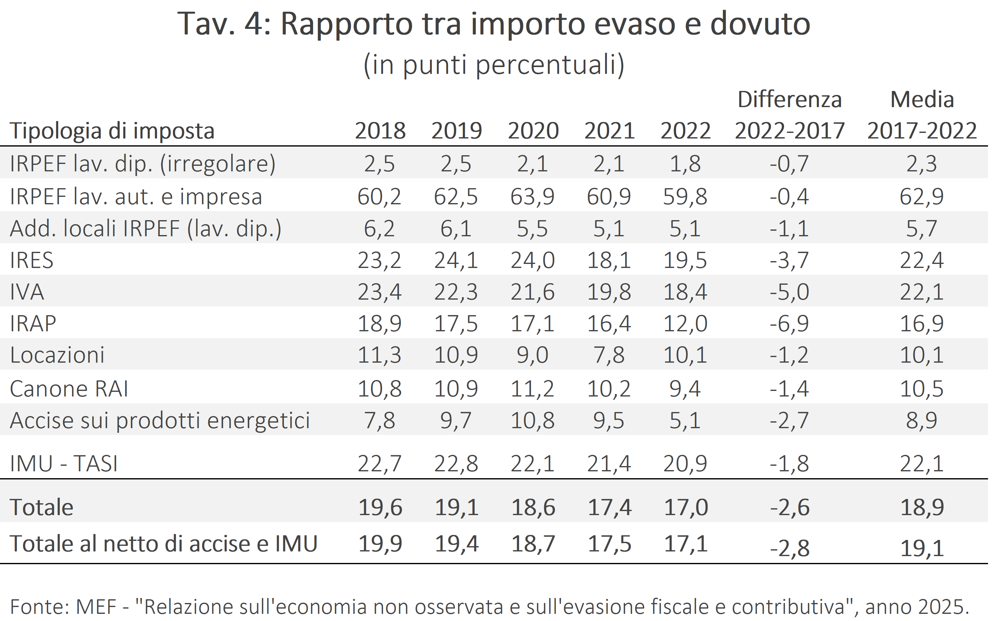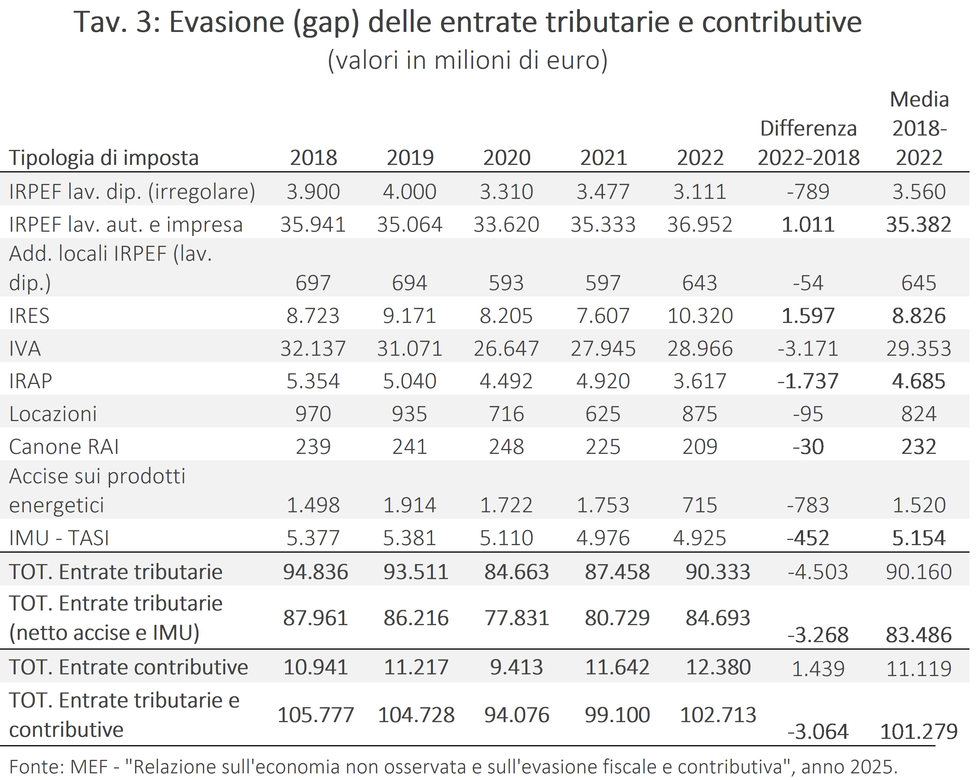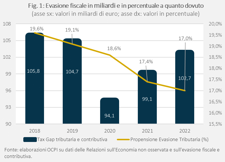 Stime dell’evasione tra 2018 e 2022