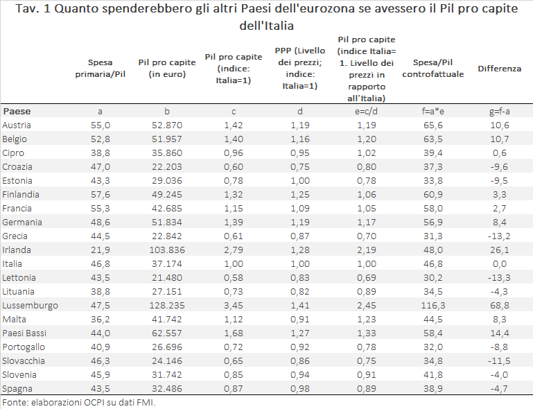 Quanto spenderebbero i Paesi dell’eurozona se avessero il nostro stesso Pil pro capite?