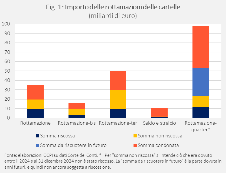 La prossima Legge di Bilancio conterrà un’altra rottamazione delle cartelle, la quinta dal 2016. I dati esposti in questa nota mostrano che i) gli aderenti alle rottamazioni, oltre a non aver pagato in passato, hanno continuato ad essere inadempienti anche in sede di rottamazione; ii) lo sconto concesso dalle rottamazioni è stato molto più alto delle somme incassate grazie ad esse; iii) le cartelle esattoriali emesse nel 2024 sono simili, in termini reali, a quelle emesse nel 2011, quando l’Italia era in piena crisi economica. Quest’ultimo punto suggerisce che il mancato pagamento delle imposte non sia influenzato dal ciclo economico e dalle conseguenti difficoltà economiche del debitore, come talvolta sostenuto per giustificare le rottamazioni. È invece confermato dalla letteratura economica che rottamazioni, stralci e condoni creano aspettative di successivi interventi a favore di chi non paga, incentivando il mancato versamento delle somme dovute e alimentando l’evasione.